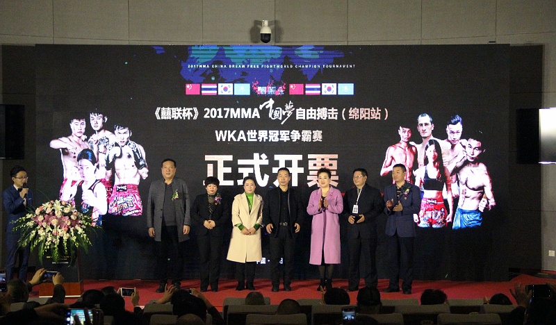 五洲風云激蕩,世界矚目綿陽。由中國囍聯(lián)集團股份有限公司冠名的“囍聯(lián)杯”2017MMA“中國夢”自由搏擊(綿陽站)WKA世界冠軍爭霸賽,12月4日在綿陽市科創(chuàng)區(qū)創(chuàng)新中心二期舉行了盛大的新聞發(fā)布會及開票儀式,獨家披露了大賽的背景、賽事安排、商務合作、票務等諸多信息。