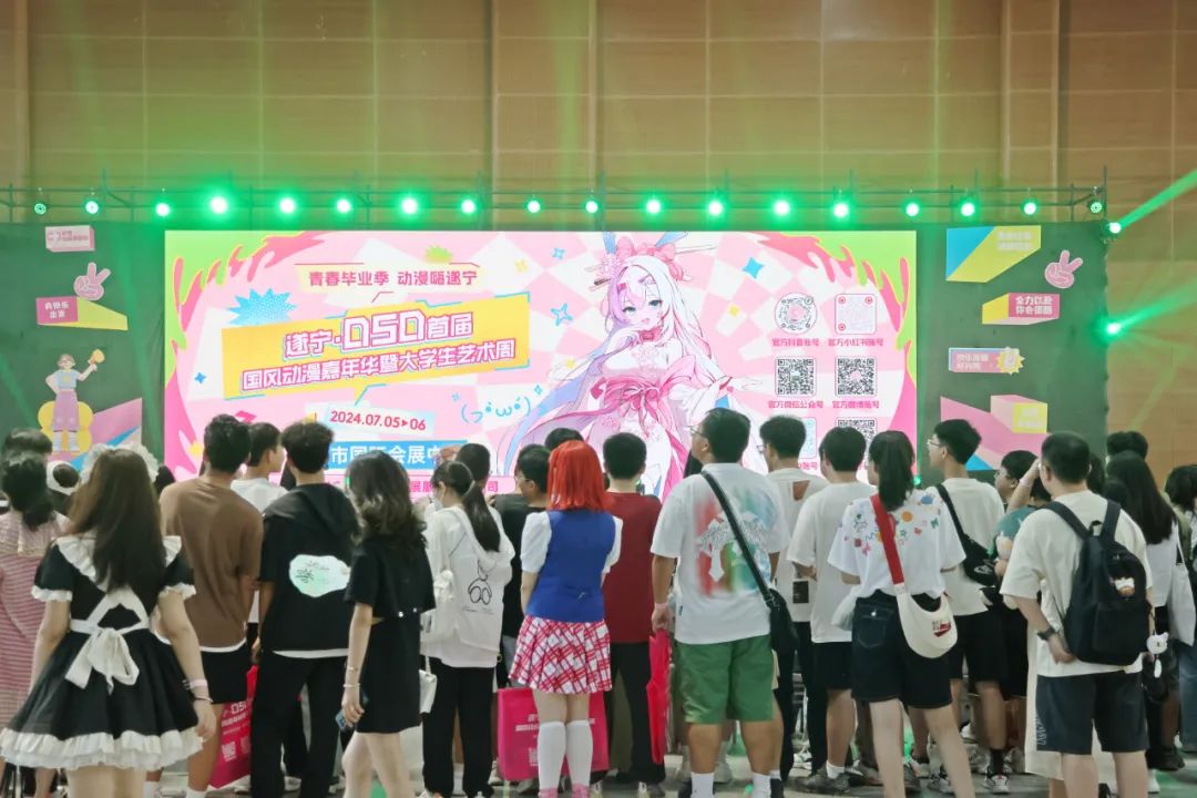 據(jù)悉,本次活動(dòng)是我市“一月一會(huì)展”活動(dòng)之一,特邀千萬級(jí)粉絲coser來到遂寧,現(xiàn)場(chǎng)進(jìn)行舞臺(tái)見面會(huì)和嘉賓簽售會(huì)環(huán)節(jié),與國(guó)風(fēng)動(dòng)漫粉絲們面對(duì)面互動(dòng)交流、簽名、合影留念,同時(shí)吸引了30余家國(guó)風(fēng)動(dòng)漫周邊展商、國(guó)內(nèi)知名動(dòng)漫游戲IP參展,其中8家非遺集市商家。